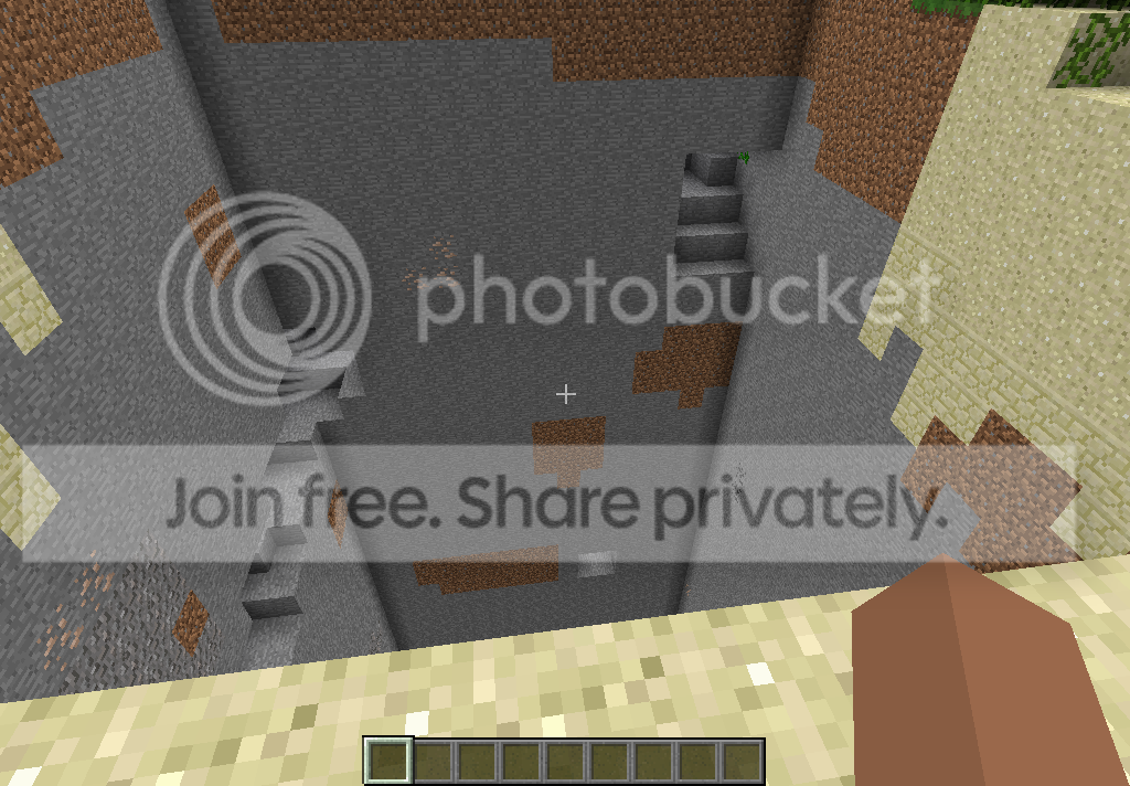 Also, I found a odd natural feature in a world that looked like a beta hole glitch, but was really a terrain glitch. The second one is em inside it, it has an odd grass bottom