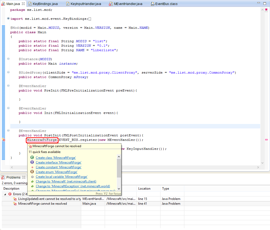 WHY can't I find MinecraftForge.EVENT_BUS and LivingUpdateEvent ?? Libraries have changed ?! I can't import MinecraftForge and LivingUpdateEvent, please help me !!!!