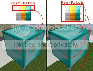 @ Tiger4Ruler & cn0n: Yes, I noticed this (iron, gold, diamond showing one texture on every side) when I quickly loaded up my textures soon after the update! What's the current thinking on this? Is it a fault with the HD patcher? Nothing has changed in the positioning of these textures on the terrain.png. I'm assuming this is only noticeable on HD textures and particularly on mine because I've done something different on all 3 faces (top, sides and bottom). Or has Notch dispensed with the differences? Would be glad for any info on this for when I get back to working on the texture pack.