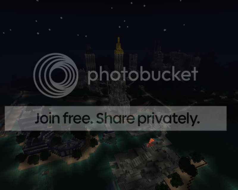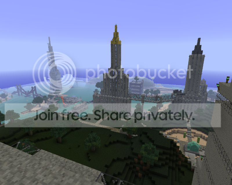 Sky Reach appears in the background. My first 'abstract' structure, and the very first scraper I built in this location. It was in essence what became the catalyst for the other buildings you've already seen.