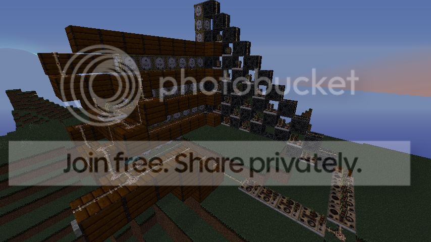 360 cannon v3 (v1 and v2 were blown up accidentally)bottom view mega cannon v2back viewthe shipship's cannon areaship's prison/laboratoryship's captain's cabin with hideaway bookshelves360 cannon v5 (v4 blew up too) my friend's (unfinished) underwater city in backgroundside viewanotherautomatic cannon v4 (v1-3 were much slower, bigger, uglier, unsafe and unreliable... and blown up)side view (yes the bottom cobble generator is disabled, it just isn't safe to shoot every 8 tick as tnt fuse time is 40 tick...(cobble generates in 15 ticks(tested it with my cobble generation speed testing machine)))vertical cannons v3&4.4 (v1 and v2 could only shoot a single tnt whereas v3 and v4 shoot 4(v4 blew up 4 times ))side view of vertical cannon v4.4my shotcannon v1my friend's multi-barrel cannon (and his flying island in background)