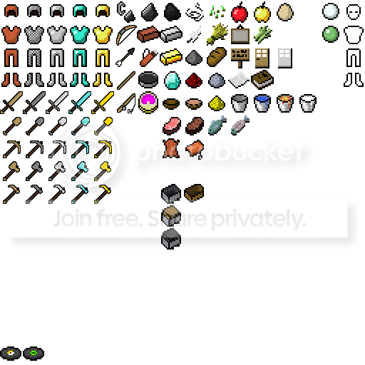 So, first post on these forums. Just wanted to say that I love the pack but didn't like having different mobs/items that lacked the art style. I'm no pixel artist, but I've started messing with the item sprites to make them similar colors to the terrain pack, as well as bumping it all to 32x32. Here's what I've got so far (tools only):