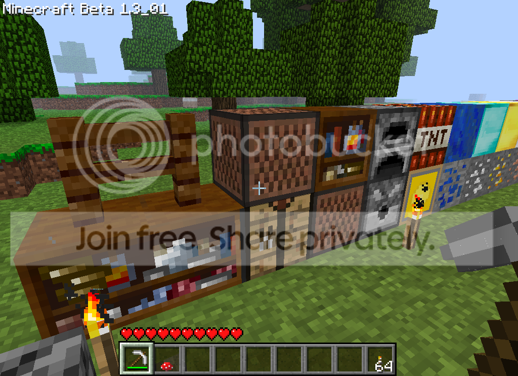 large chest, fence, music box, note block, tnt and the ores. yeah, i'm working on the diamond block.