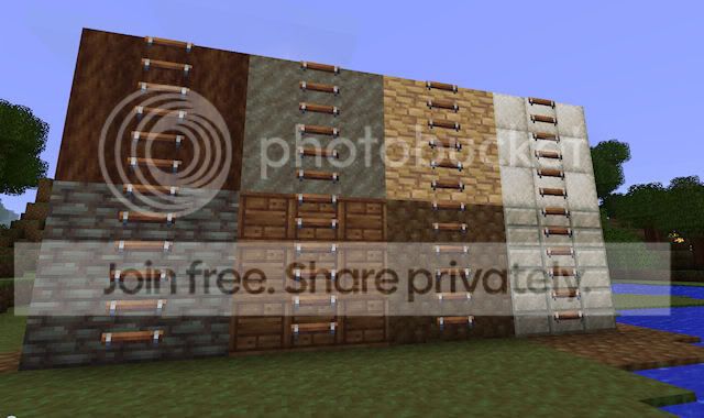 I made the ladders with four rungs like the default texture. I hadn't thought of making it more sparse. It's an interesting look, although I think it looks a bit strange that the connecting bits are now separated. I had envisioned them to be more like chains, but I guess in your version they are wall anchors instead.