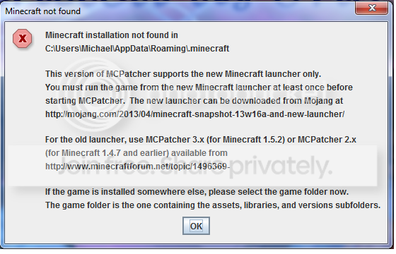 I didn't unpatch mcpatcher-3.0.4_01.exe from this before running the new one I unpatched from the new one first
