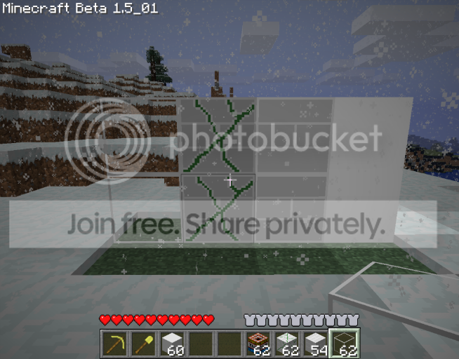 Glass, Mossy Cobble, Cobble, and Glowstone.(Respectively)