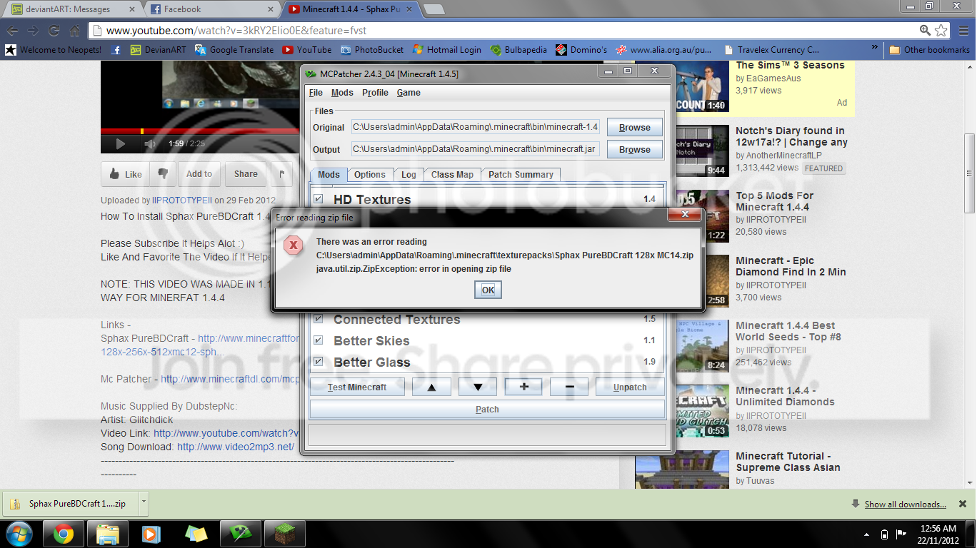 I downloaded the zip in the 'recommended' screen res setting to be on the safe side, and I have MCPatcher but every time I try to get it to work it comes up with this: http://i859.photobucket.com/albums/ab151/TwistedTransistor666/Sphaxerror.png