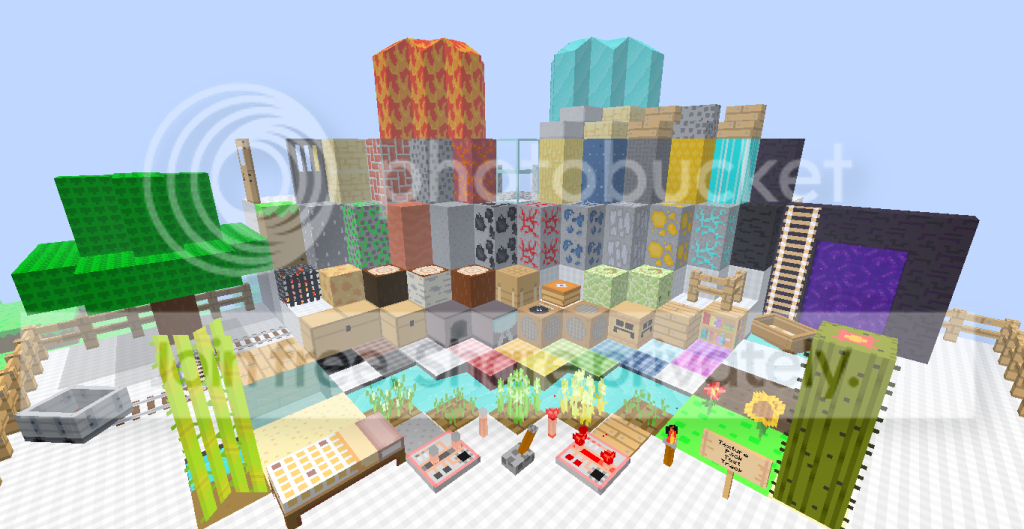 Both Doors,All Ores,Chest,Furnace,Cake,Wood Plank,BedRock,Ladders,Torches,Mob Spawner