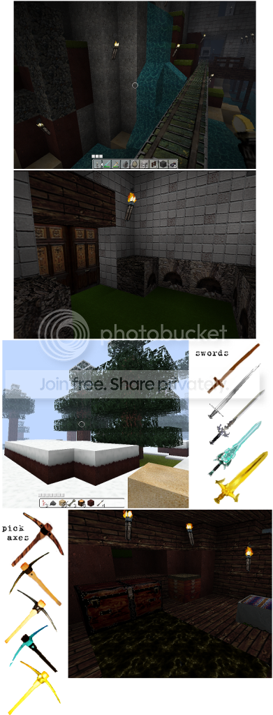 After beating FF12 and spending a good amount of time ogling at it's realistic look on a low grade system I wanted to try and make a low graphics game - minecraft - carry the same beauty as other games out there. I've been working on a texture pack for a week or so and so far here is my compilation. I've done the major textures so far, and say I'm about 70% done. I'll release a .zip only when it's completed. Here's a little preview.