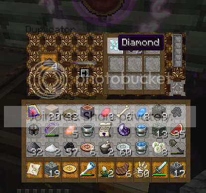 More Thaumic/Arcanacraft goodness courtesy of your friendly laser-armed alien, Azanor - this one duplicates diamonds for some Vis and spits it out in the panel to the right... I have not finished off all the GUIs but with this one we are finally finishing off all grey-series GUIs for Thaumcraft. We also managed to assemble another for the Arcane Bore, a most interesting machine that lagged one of my worlds.
