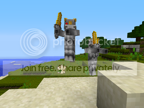 This is a texture pack intended to be used for my quest that I'm working on but I have also made it work for general use. It is based off of painterly and use to be 100% rhodox but now I've modified about 25% (probably 40% now) and now I think it's ready for the public. Some major changes from the ordinary is that cobble is smoother than stone (rhodox), stone slabs are polished and white (my texture), stone looks more realistic (rhodox), mushroom stew is a soda bottle and mushrooms are glasses of various drinks (my textures), sandstone is now concrete, the bow is now a harpoon gun and the arrows are harpoons (my textures), zombie pigmen are now robot warriors called sentinels with custom gold swords (all my textures), clay is yellow (rhodox), I remade the diamond, iron, and gold blocks and made them more... pretty (my textures), I remade the brick and wooden plank blocks (my textures), Katie White from The Ting Tings is really hot (not in the texture pack sadly), I remade a lot of the paintings into TVs and other modern things (my textures), and fish are now blowfish and turn into sushi when cooked (rhodox). Hope you like it! Planetminecraft.com sure doesn't, anything painterly related is banned... how lame...