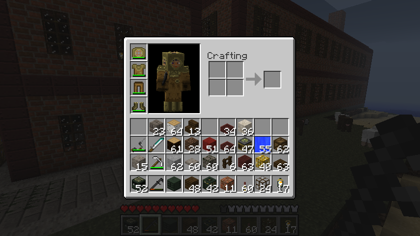 Items are redone to look like common equipment used by factory workers and coal miners from the 1900s. For example, the wood sword is now a hand drill (known as an auger or bit-and-brace), the stone sword is a pipe wrench (also known as a monkey wrench), the iron sword is a bayonet (not as common to workers, but works) and the diamond sword is a machete. Also, the bow is now an industrial rivet gun.