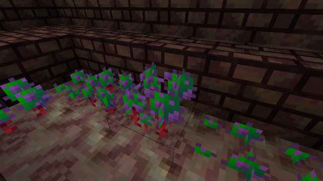 Ok, so I think this will be the nether wart. It's a bit different (more on the abstract side) but I took more liberties here since nether wart isn't real (outside of the Minecraft world). :smile.gif: