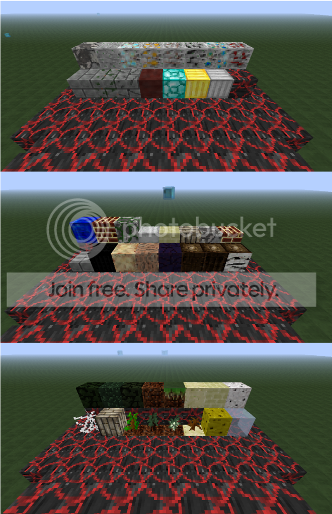 Stone brick, mossy stone brick, cracked stone brick, clay, diamond block, gold block, iron block, bedrock
