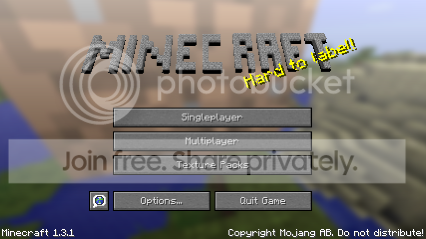 Hey, what's up guys? This is my latest texture pack, which is based off of Minecraft Alpha 1.2.6. It features the old textures for grass, gold blocks, diamond blocks, iron blocks, cobblestone, and the old title. If you don't like it please don't hate, and if it's too simple, then don't be like "OMG derp derp derp rage rage IT'S SO UN DETAILED nag nag nag" As I will ignore you. It doesn't have alot of changed textures because it's just supposed to cover everything that was different in Alpha. So here's a screenshot and download: