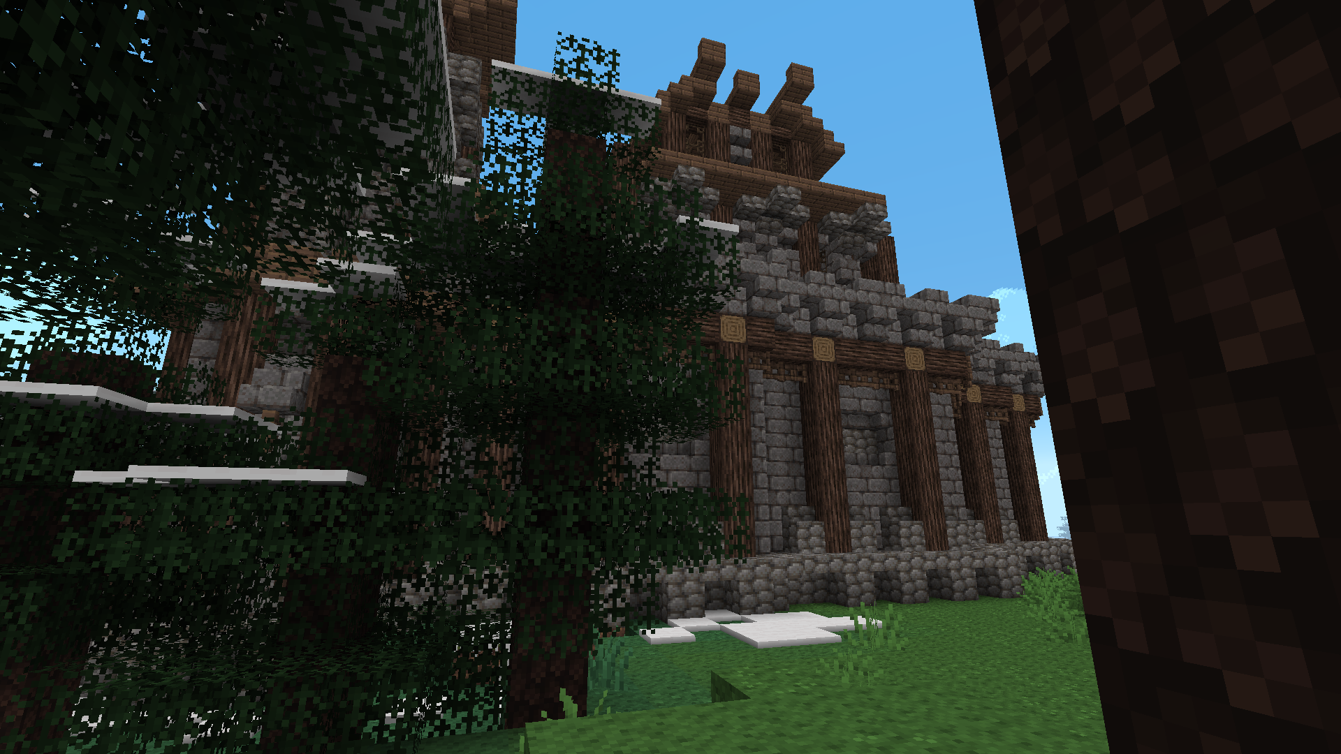 New pine logs, they work a lot better for building now, as well as being better looking in forests. The other ones just had something weird about them....