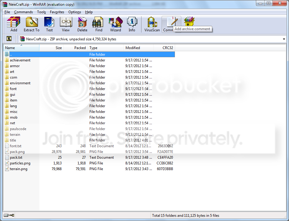 Step1. Place Downloaded NewCraft rar file into %appdata%/Roaming/.minecraft/texturepacks