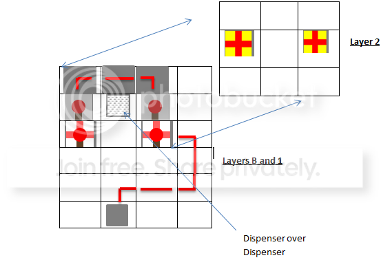 So, I was playing around with Redstone last night and I gained a good understanding of how circuits work. It wasn't exactly straightforward in any of the guides I read or saw.. It took me awhile to figure out that Redstone Torches only go out when power is flowing into the block they are attatched to.. Anyway, I tried my hand at making a gun inside a mine I was exploring since baddies tend to wander through there and ambush me, and also for future use. It.. sorta worked... but not the way I intended. As of right now, I have two dispensers that fire twice each. Once when the plate is stepped on and again as the plate resets.