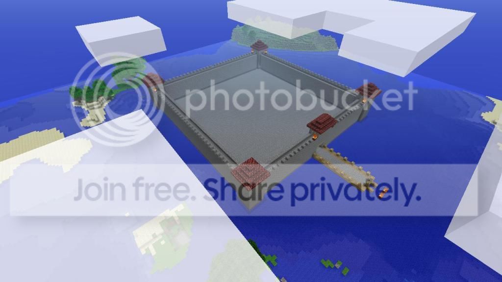 You should try to make a tower in the center made of cobblestone and make a spiral staircase inside. Then make 2 houses at the top of the tower, one to the left and another to the right.