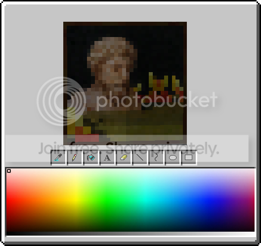 It should have the Color Bar, Color Picker, Pencil, Paint Bucket, Text, Eraser, Line, Curved Line, Circle, and Square tools.
