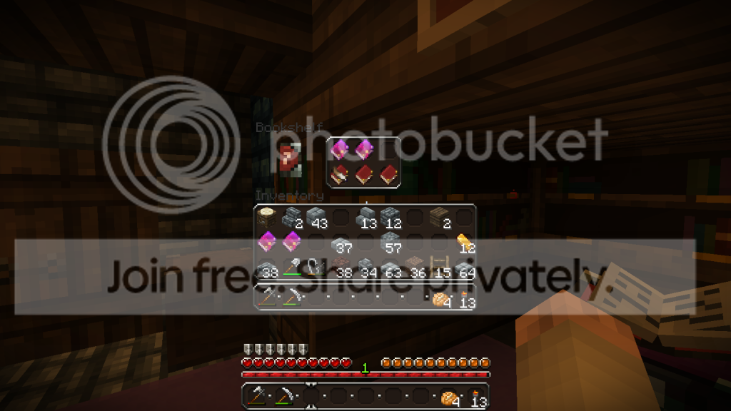 Could also be used to show the shelves 'filling' up. Presently we have blank books, books you can write in, finished books and enchanted books. I actually write down my 'finding's and in-game information, make maps and etc... but my my libraries are in chests, despite an obvious alternative. Therefore I suggest bookshelves. Here's a mock up of what it might look like (using my texture pack, sorry about that)