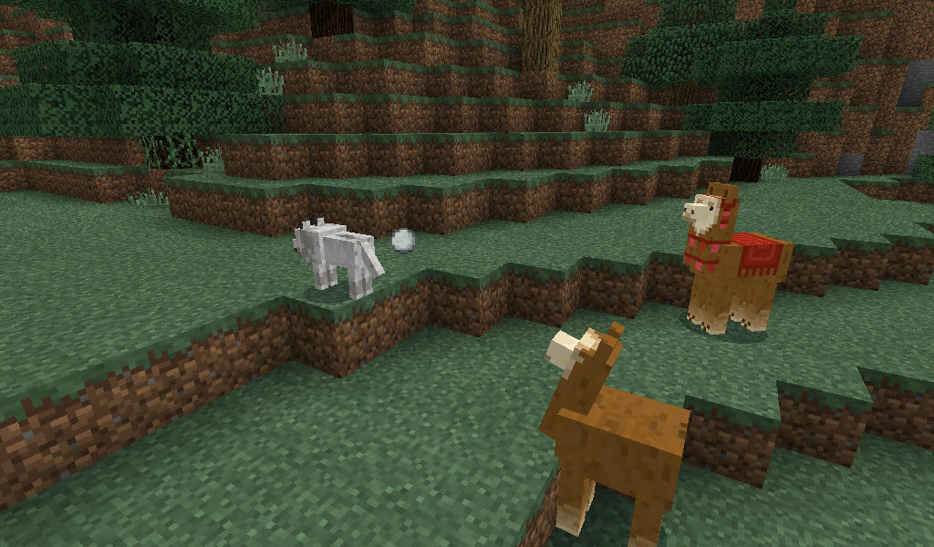 Wild llamas spit at creepers and wolves, a saddled llama and a tamed wolf are friendly.