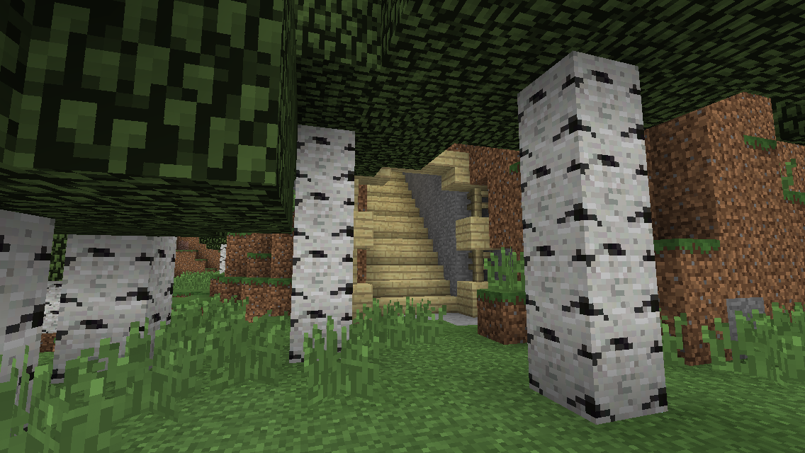 I've also built small other base which is a bit tucked away but not far. It's where I go to dig up any birch wood I need.