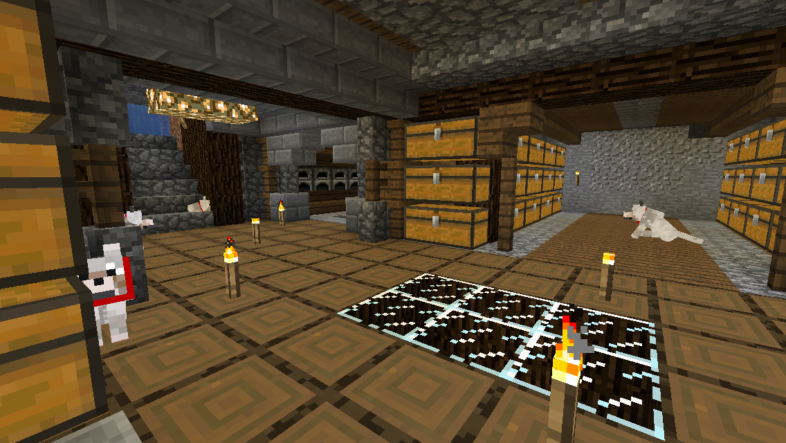 I also need to polish up the lighting a lot and find a home for my dogs. There is a zombie spawner right on the surface of my world which I've turned into a handy little grinder that drowns them. Unfortunately I don't actually need anything from zombie drops. I also haven't found a skeleton spawner which would would be incredibly useful. Mineshafts have also been avoiding me and I have a long we to go before I find my stronghold.