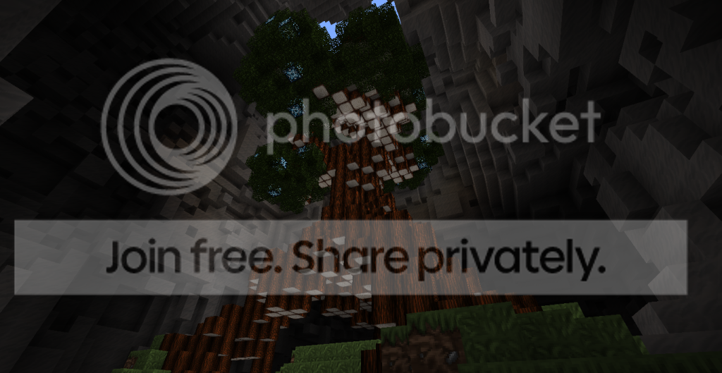 A tree I made that's nestled in a cave. light shines down on the top of it from a crevice above. the whole thing was made on a super flat world using world edit.