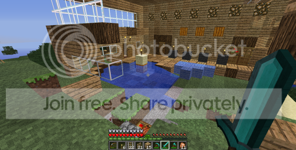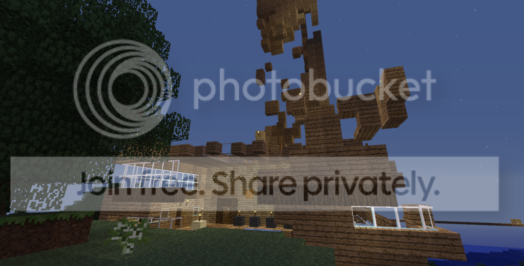 What's also interesting to note is that damaged blocks were not replaced with air, resulting in floating water, but instead the water flowed into the damaged areas. notice the flowing water inside the house, where there had been a small rectangular pool previously. This is unlike the normal chunk error, it's like a bomb went off.