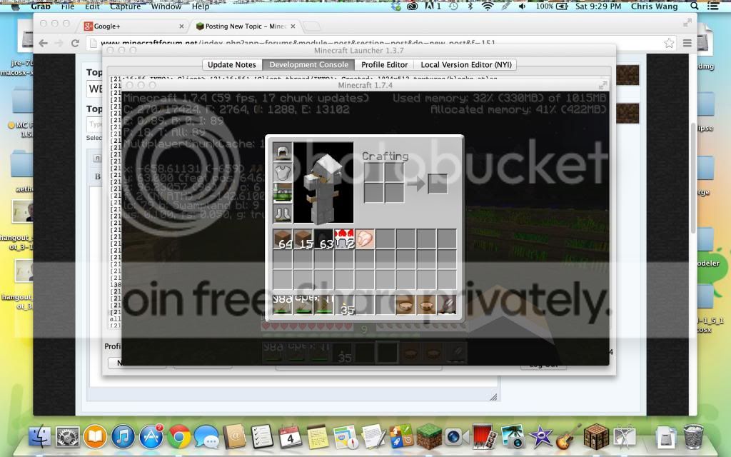 So I start playing my singleplayer world. I decide to collect some wheat from my farm (as usual when I first enter). Just a few weeks ago, this weird glitch started happening. First, when I look somewhere far (about 14-16 chunks away), it would start flashing. I press F3 and it starts saying 0 chunk updates time to time. I don't really mind it at first (since I don't really look up anyway), but then if I don't do anything about it, any words in the game will turn into these white vertical bars, and my toolbar for my mac starts to spaz out as well. I tried doing that f3+a thingy but it only works for a short period of time. This happens for any texture pack I use and for some reason the development console doesn't say anything suspicious. PLEASE HELP!!!