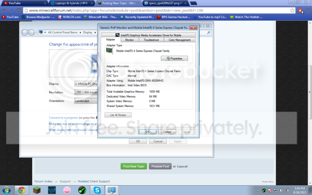 Hello, my name is Danny and I want to ask a question about "Speculations in laptops to make games faster", or at least Minecraft. I've tried using "Optifine U B4". It made a minor change, so I kept using it. Then when it came to modding with forge, there was a spectacular change! From 14 fps, I went to 26 fps! But then when I heard that normally minecraft is supposed to be 60 fps, I saddened.