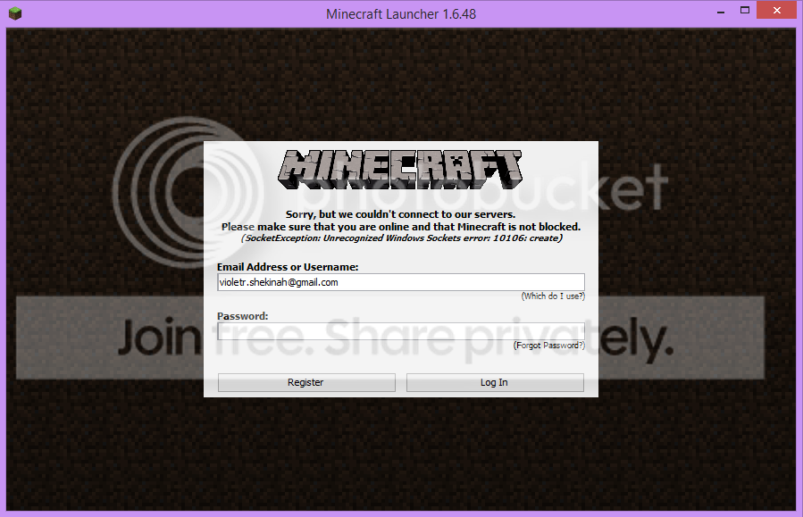 Before this, I kept getting a crash report, so I logged out to try and log back in to see what the problem was. Apparently it was this. :\