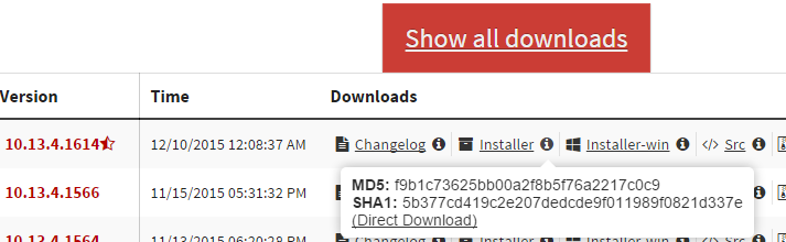 If you click the version you want then click show all downloads and hover your mouse over the icon that looks like an " i " next to the download you want it should have a small box pop up with a link to the direct download that will skip the ad page - useful when encountering problems with it.