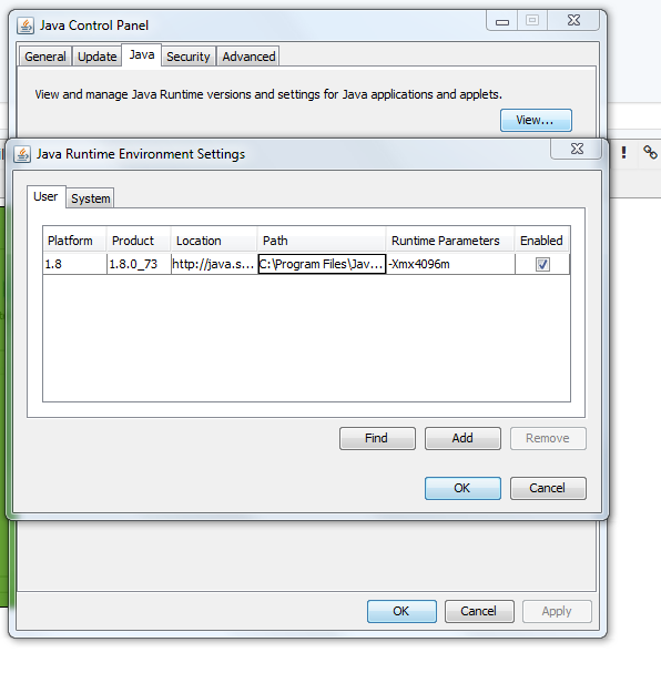 JRE Settings / Runtime Parameters